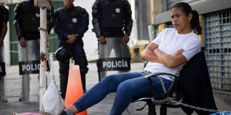 El grupo de familiares también permanece encadenado desde el jueves cerca de Zona 7 en protesta por el incumplimiento de la liberación de los presos, una promesa que hizo hace una semana el presidente del Parlamento, Jorge Rodríguez.